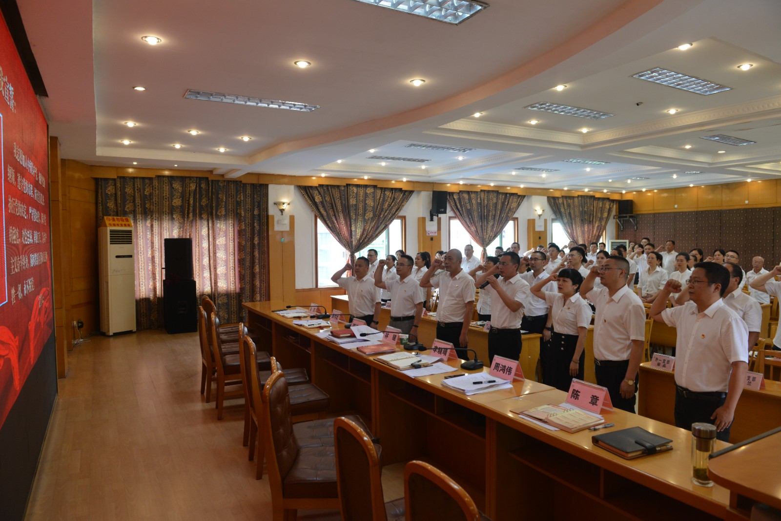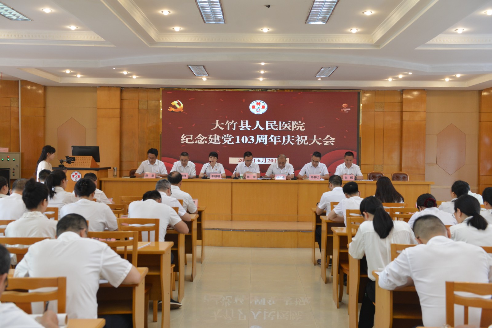 七·一前夕,院党委组织召开建党103周年庆祝大会,全体与会人员齐声高唱义勇军进行曲,表达了对党的拳拳赤子心和对国家的殷殷爱国情,党委书记林键同志带领大家重温了入党誓词,并组织学习了习近平总书记关于卫生健康工作的重要论述和注重家风家教建设的重要讲话精神,进一步坚定跟党前行的理想信念和为人民健康服务的初心使命。
