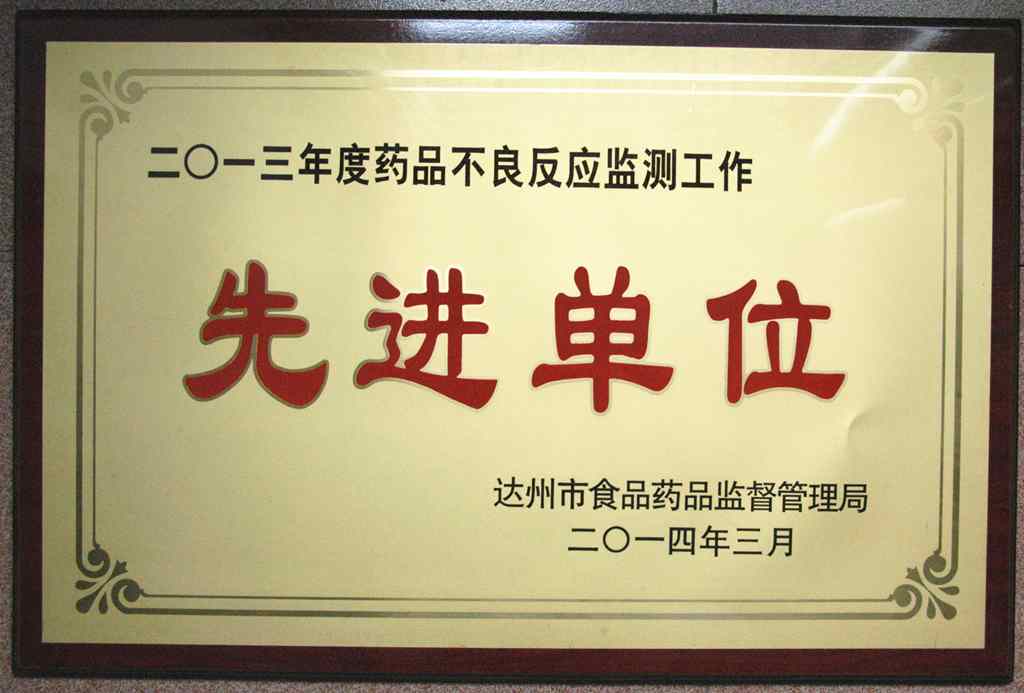 药品不良反应监测先进单位