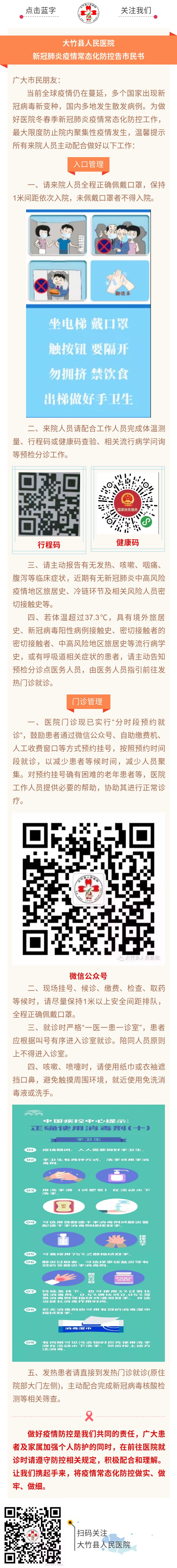 大竹县人民医院新冠肺炎疫情常态化防控告市民书