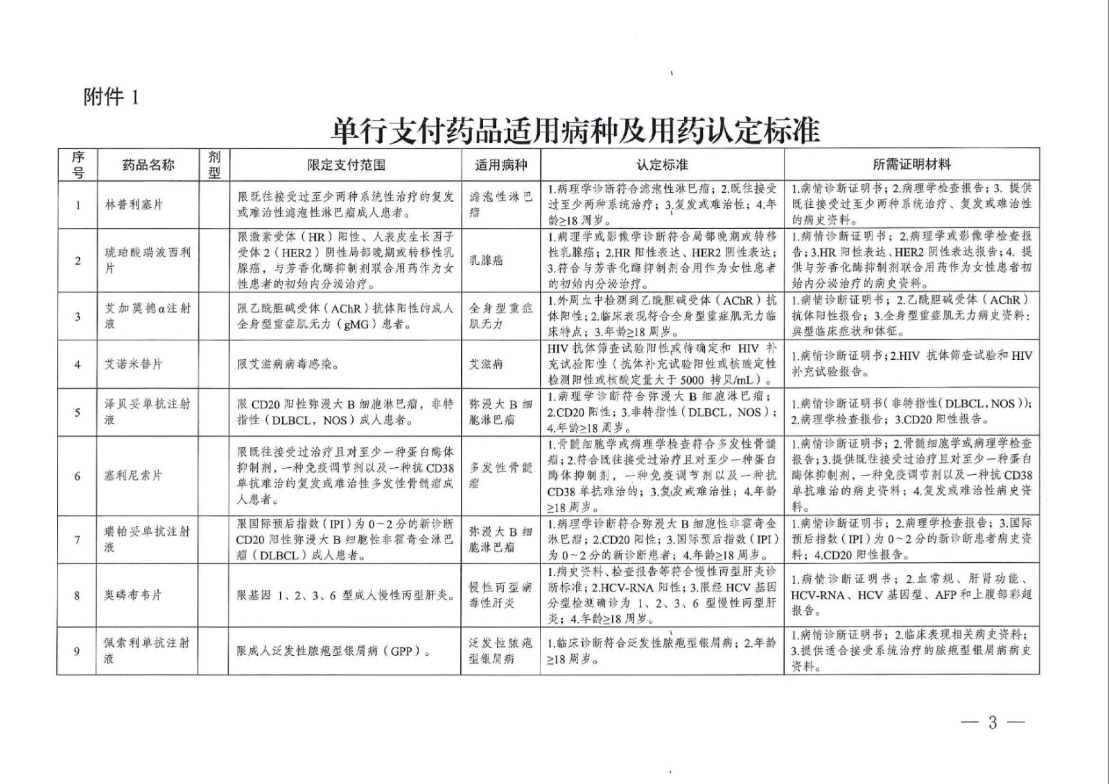 单行支付药品和高值药品政策